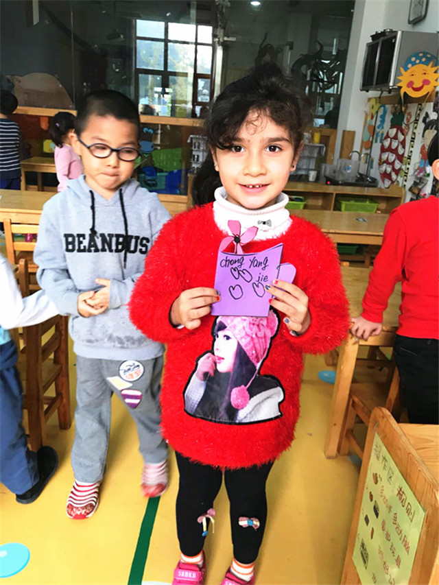 老师向孩子们介绍了重阳节的风俗习惯,孩子们亲手制作了精美卡片送给辛苦的爸爸妈妈、爷爷奶奶们。