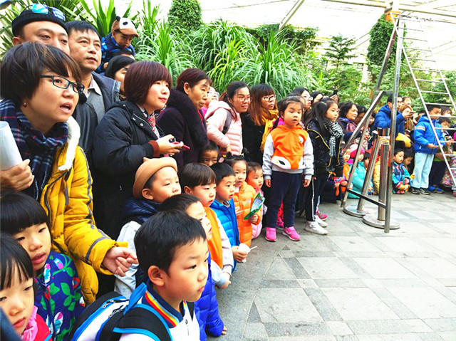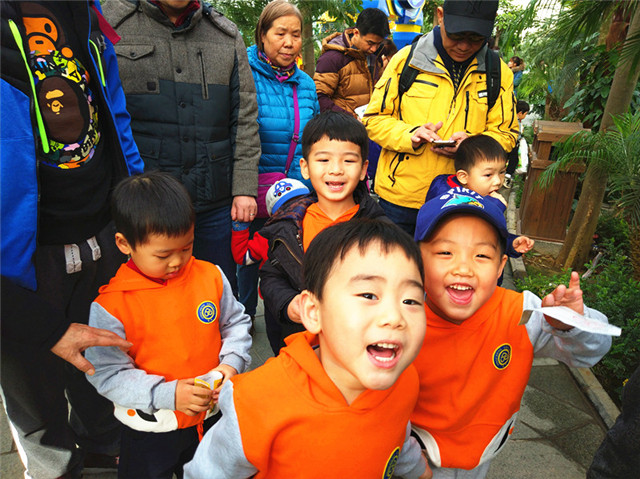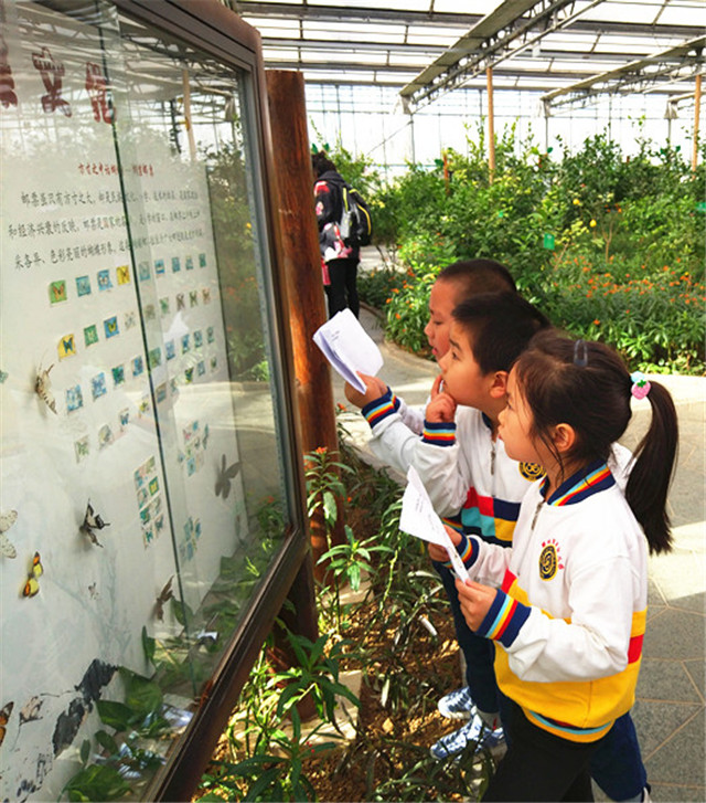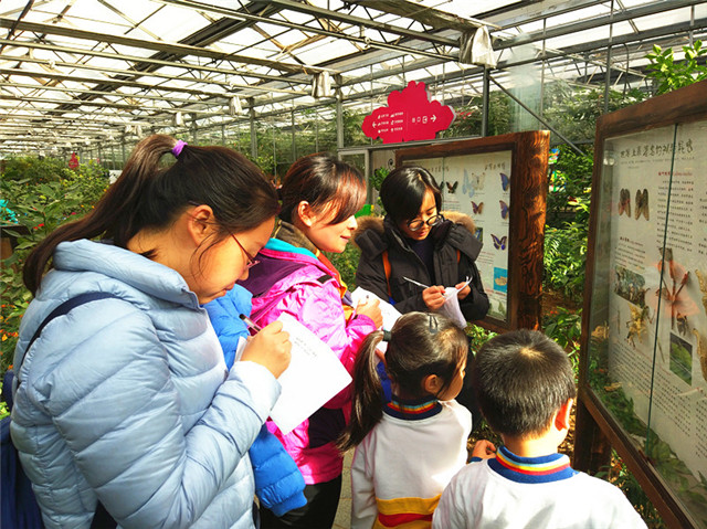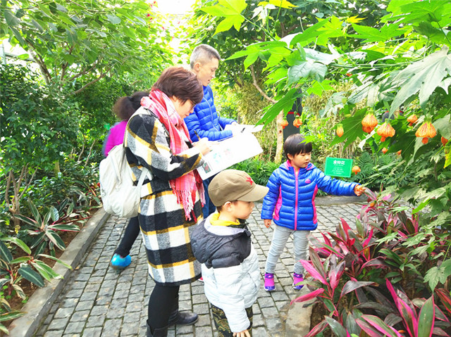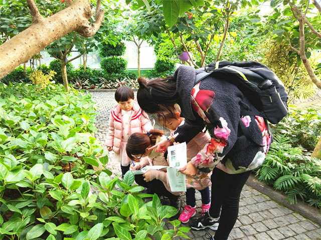 哪种是金铃花?哪种是灯笼花?中国最大的蝴蝶叫什么?巴西的蝴蝶长什么样子……带着一个个问题,宝贝们和家长一起开启了温室寻宝大行动。