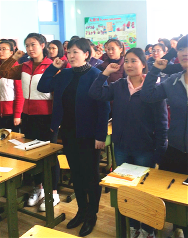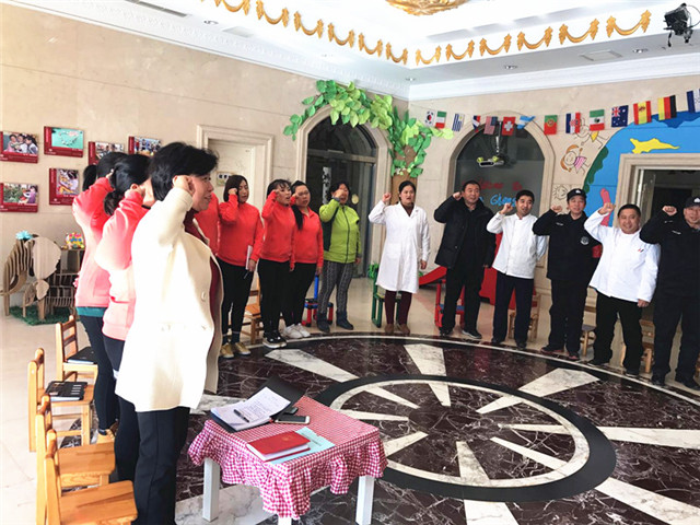 精诚实验幼儿园南磨房园及时对全园老师进行师德培训,老师们郑重宣誓。