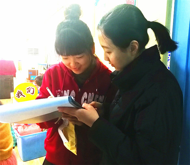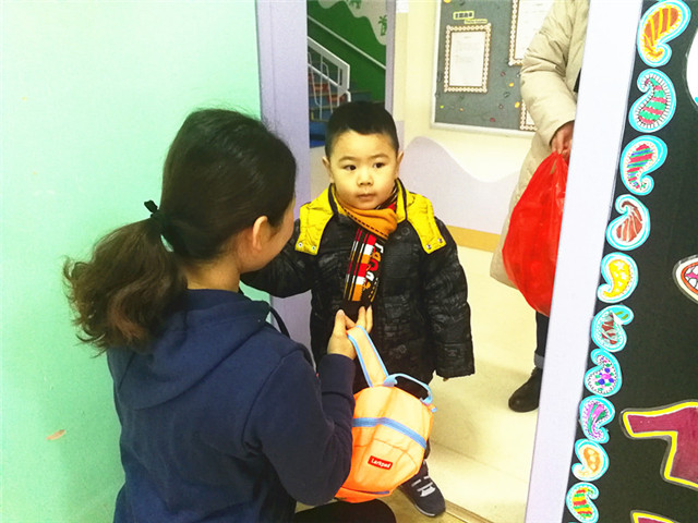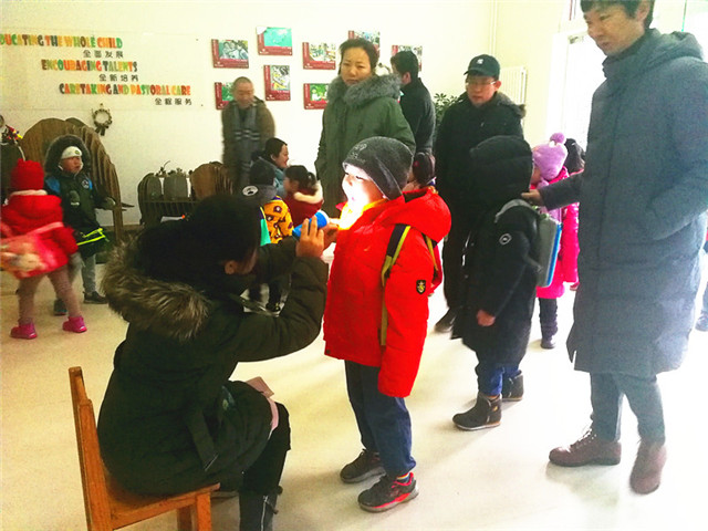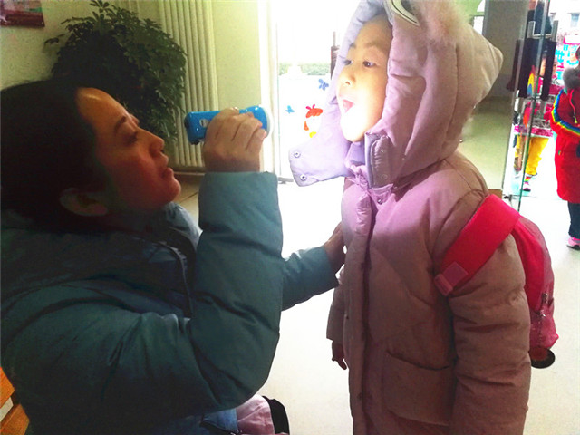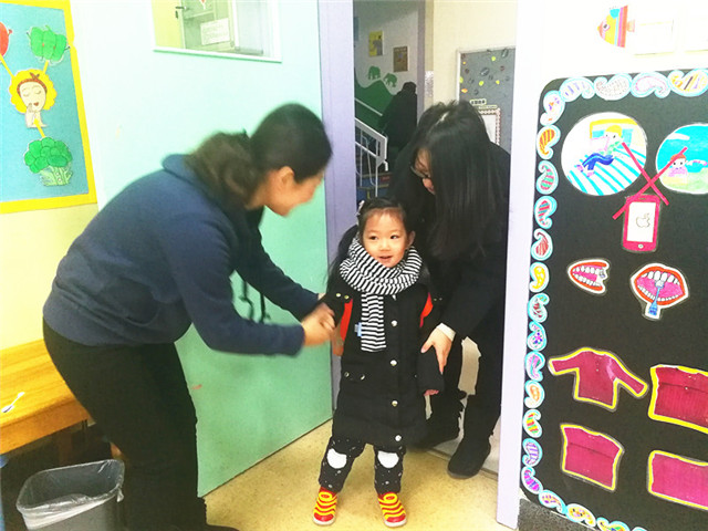 护送宝贝安全到达教室后,当班老师清点人数,进行确认签字