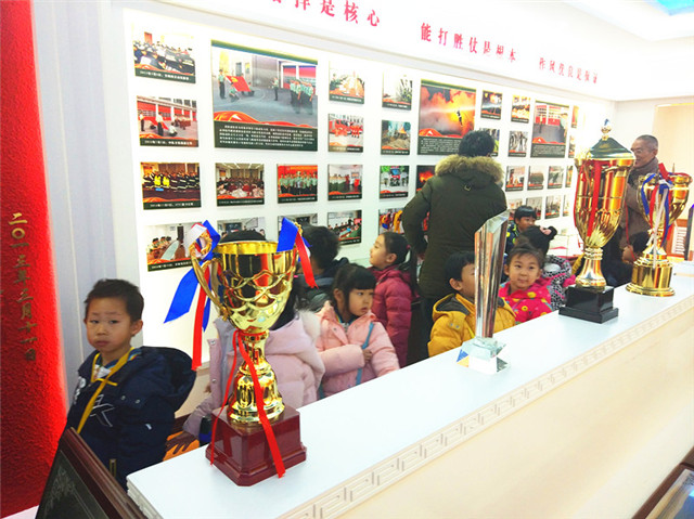随后,宝贝们来到消防中队的荣誉室进行参观,看到满屋的奖状、奖杯,宝贝们的敬佩之心油然而生,都为勇敢、奋不顾身的消防员叔叔们点赞!