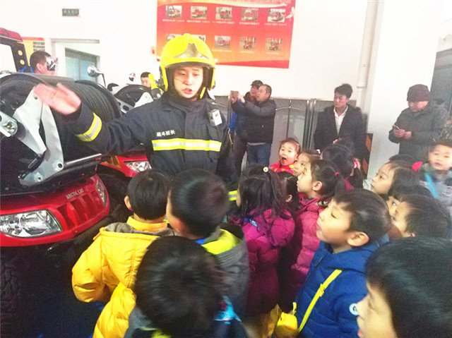 一早,育慧西里社区的陈彤书记就来到幼儿园,带领宝贝们一起去消防中队参观。