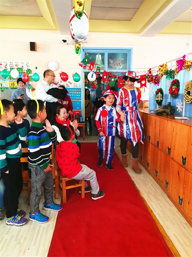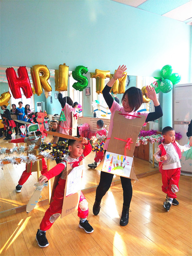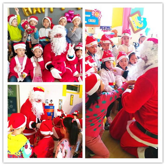 迎新年亲子联欢会的第一天刚好是圣诞节,园里的老师装扮成圣诞老人,在宝贝们入园的第一时间为宝贝们送上糖果和新年祝福!