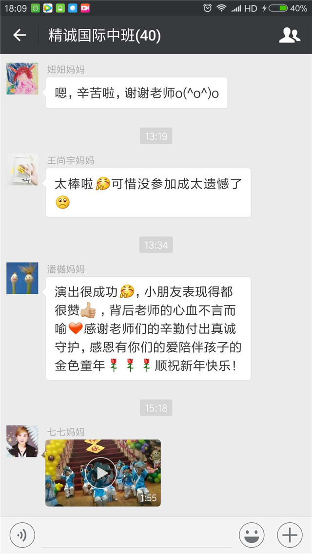 联欢结束后,家长们纷纷将宝贝们精彩的表演和对老师的感谢分享到朋友圈。