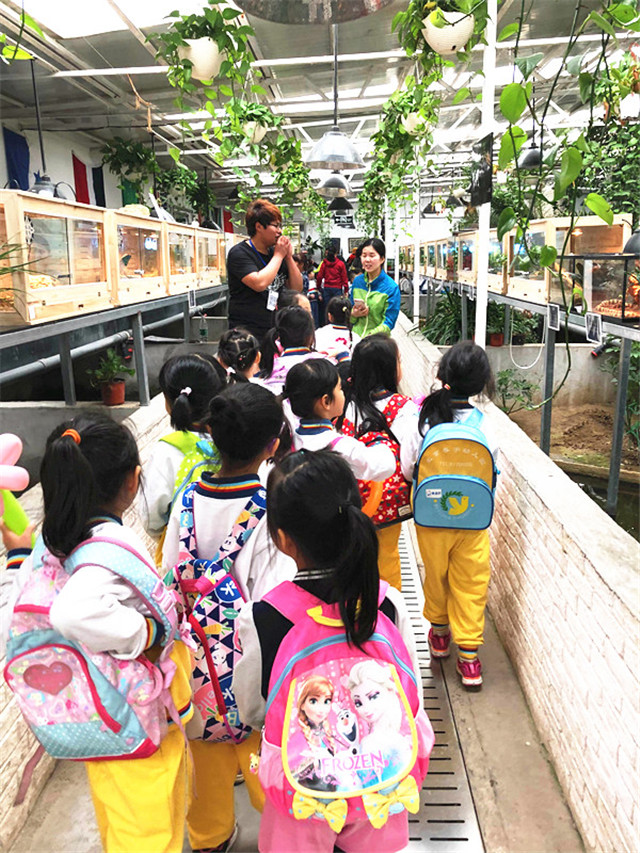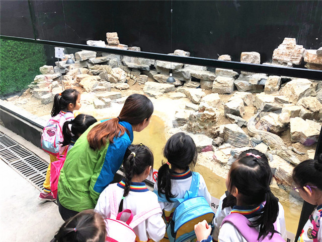 为了让孩子们了解更多的爬行动物科普知识,增强保护濒危生物的意识,精诚实验幼儿园育慧里园分批带领孩子们来到了爬行动物主题公园,让孩子们近距离了解爬行动物的种类与特性。