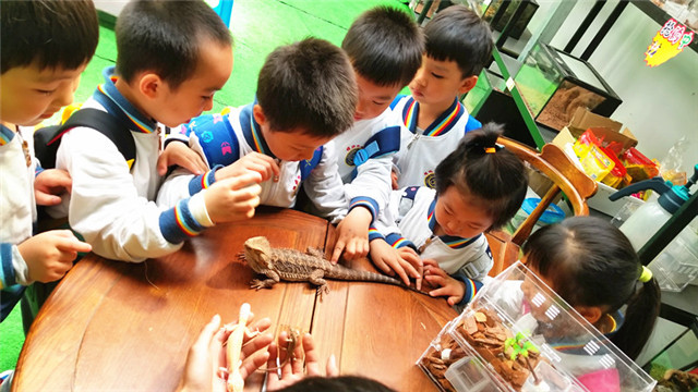 快看,鳄鱼锋利的牙齿、乌龟坚硬的铠甲、在树林中滑翔的晰蜴……在这里,孩子们零距离的接触小动物,触摸和感受它们,给它以温暖和关爱。
