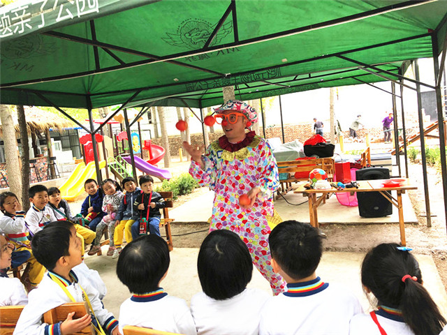 小丑叔叔准备了魔法棒,带给大家神奇的视觉盛宴。诱人的水果突然出现,瞬间又消失,七彩绣球不断抛出又接回,各种道具在小丑叔叔的手里完全转开了花……最后每个小朋友还从小丑叔叔的手里获得了小礼物——各种百变的气球。