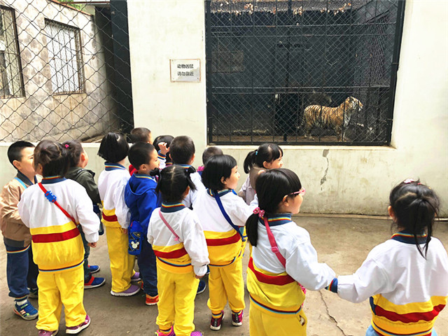 孩子们兴高采烈地参观了户外的各种大小型动物,东北白虎、小兔子、山羊、鸵鸟……这些或大或小、或动或静的动物朋友都与小朋友们进行了近距离共处互动,让宝宝们幼小的心灵感知到,正是由于人类和动物们的和谐共存,才造就了这个世界和谐美好的生态环境,而这一切依然需要大家在现在、在未来不懈地去维护、去爱护!