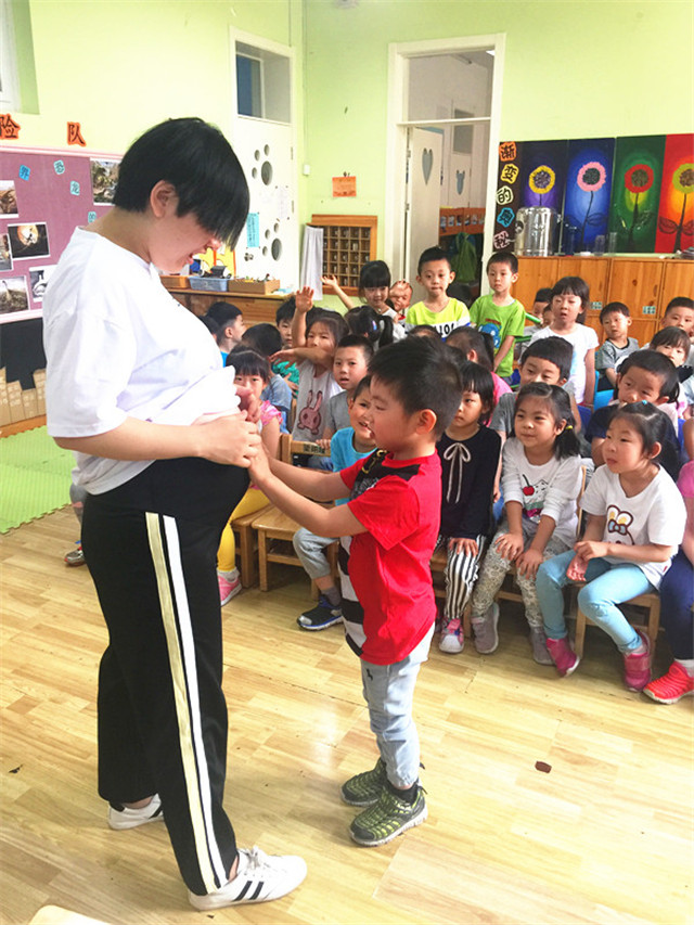 维尼班怀孕的孙老师给我们讲解了准妈妈的心路历程,看着挺着大肚子孙老师真的好辛苦啊!