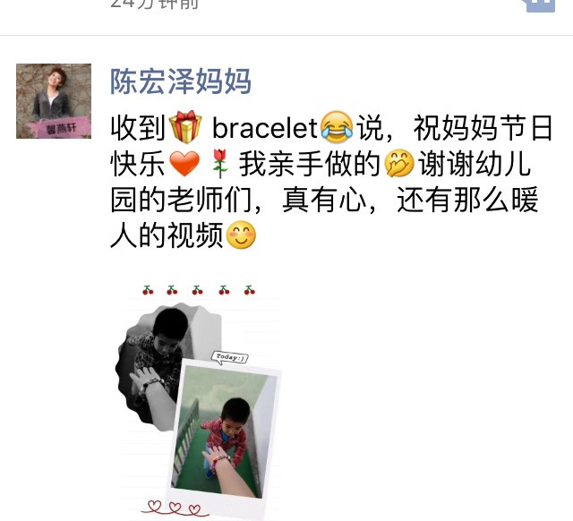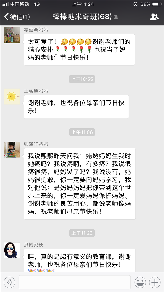 在这特殊的日子里,精诚实验幼儿园育慧里园的宝贝们用自己朴实的行动表达了对母亲的爱,培养孩子们的感恩之心,加深了孩子们与妈妈间浓浓的爱。活动虽然结束了,但对妈妈的爱永远不会停止,以后的每一天都要关爱妈妈,感恩妈妈。