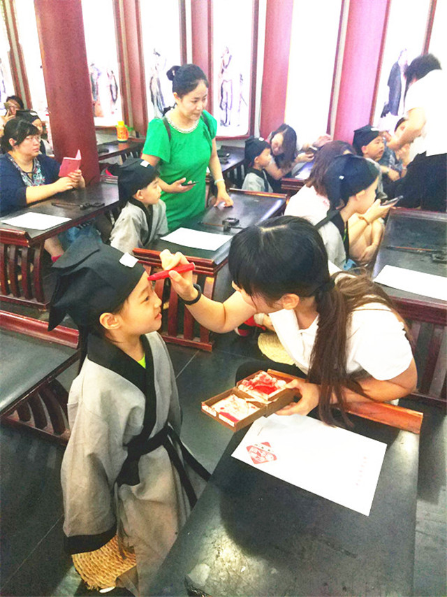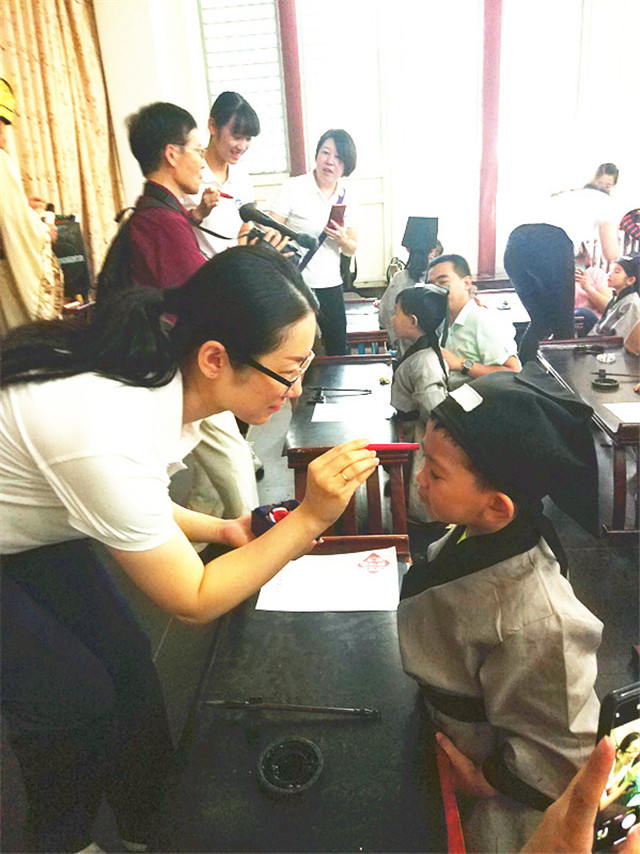 “痣”通“智”,意为开启智慧,以此寄托美好的愿望,寓意着孩子从此眼明心明,好读书,读好书。老师们亲手用朱砂给孩子们点红点,为孩子们送上最美好的祝福。