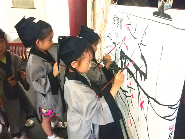开笔礼仪式结束后,孩子们体验了代表古代绘画艺术的“桃李春风”。