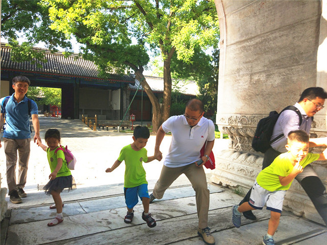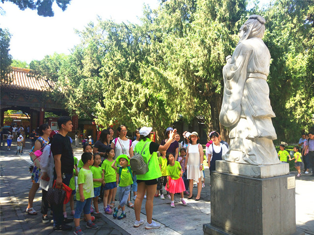 孩子们在导游的带领下,参观了集贤门、太学门、琉璃牌坊等景观,跃龙门、赏古槐,大家在国子监沐浴国学熏陶,感受传统文化的魅力。