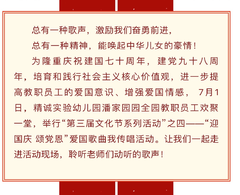 【第三届文化节】唱响爱国歌曲,弘扬时代精神 ——精诚实验幼儿园潘家园园举行“迎国庆 颂党恩”爱国歌曲我传唱活动