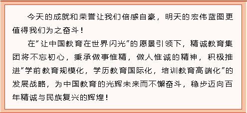28年来,精诚教育集团坚守教育初心,一路砥砺奋行,铸就了享誉盛名的中国民办教育优秀品牌,正在向着百年精诚的梦想稳步前进!