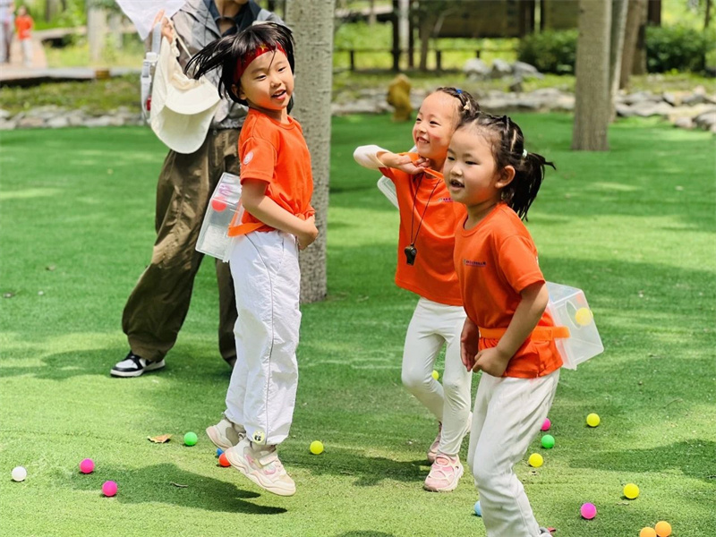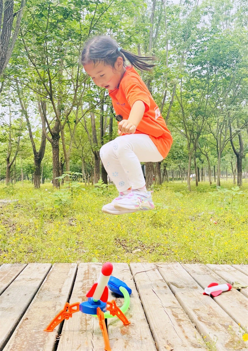 在袋鼠跳跳跳区域,孩子们化身活泼小袋鼠,背着装满彩色小球的小筐欢快蹦跳,笑声在阳光下弥漫,平衡与协调能力在一蹦一跳间悄然生长;绿茵如毯的球类运动场,是孩子们挥洒活力的天然舞台。他们传球、射门,投篮,切实感受球类运动魅力;火箭发射区则充满神秘与惊喜,孩子们专注组装火箭模型,当火箭冲向蓝天,他们眼中闪烁着对科学的好奇和对未来的无限憧憬。