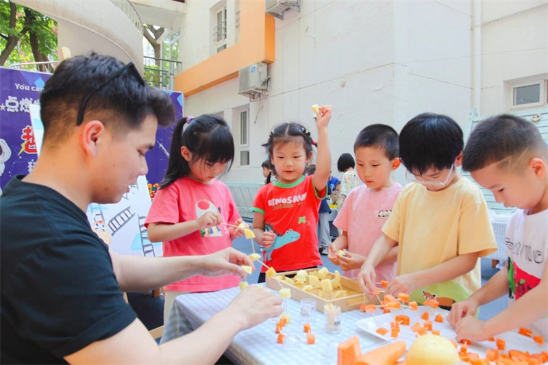 双节交织的美好时光,精诚实验幼儿园潘家园园精心准备了各式传统美食:晶莹剔透的粽子散发着竹叶清香,软糯香甜的绿豆糕点缀着吉祥花纹,五彩缤纷的水果拼盘映照着孩子们惊喜的笑脸······每一种美食都承载着节日的美好祝福,让孩子们在品味中感受传统文化的魅力,品尝幸福童年的味道。