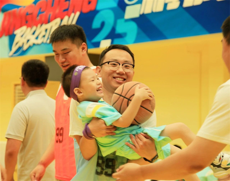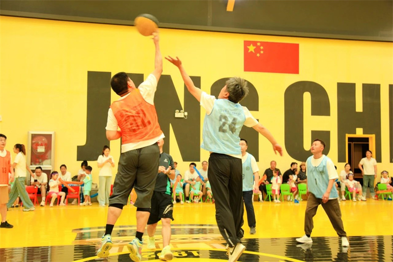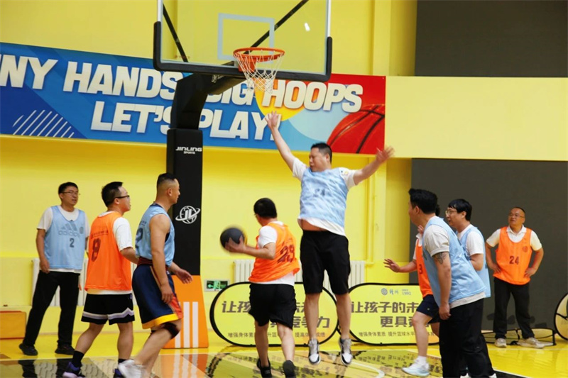 当“超级老爸”们踏入球场,气氛瞬间点燃!平日稳重内敛的爸爸们化身矫健球员,抢断、快攻、跳投……每一个动作都充满力量与技巧,每一次进球都引发震耳欲聋的喝彩。赛场上是力量与速度的激烈交锋,是热血与激情的肆意碰撞;场边,孩子们眼中闪烁着崇拜的光芒,“爸爸加油”的呼喊声此起彼伏,响彻整个球场。在这一刻,爸爸们用拼搏的汗水和不服输的劲头,向孩子们诠释了永不言弃的体育精神内核,他们无畏拼搏的身影,是孩子们心中最耀眼的榜样!