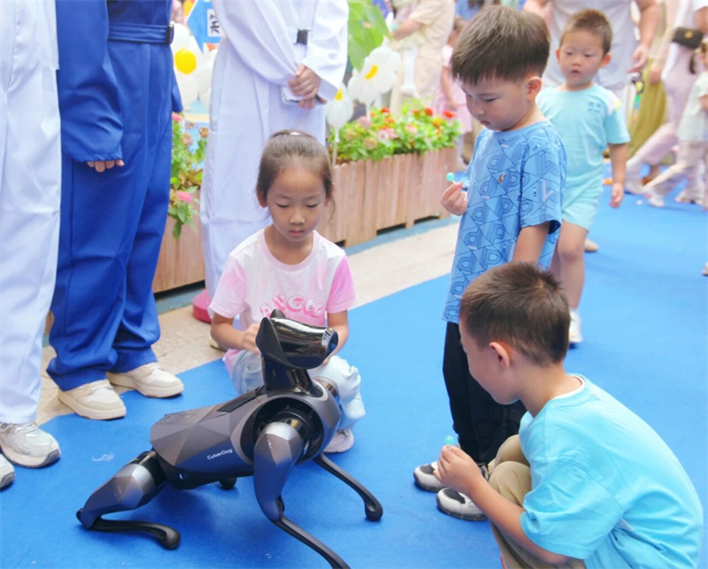 火箭发射基地前,孩子们满怀兴奋地与“宇航员”相遇,将对星空的无尽好奇定格为成长中难忘的一页;深受喜爱的“汪汪队”智能机器狗也来到现场,它摇摆着尾巴,与孩子们亲切互动。清脆的笑声与科技的惊喜在空气中交织回荡;科技体验区更是点燃无数双好奇的眼睛,孩子们尝试各种趣味科技小游戏,在玩乐中感知、在尝试中领悟,悄然播下热爱科学、勇于探索的种子。