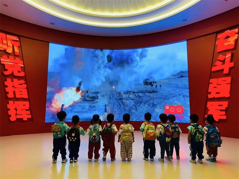 孩子们凝神注视这些静默的钢枪,仿佛穿越时空,听见它们在战火中发出的呐喊,看见先烈们手持钢枪、捍卫山河的英勇身影。一颗颗幼小的心灵被这段厚重历史深深触动,对革命先烈的崇敬与对今日和平的珍惜,在此刻悄然生根。