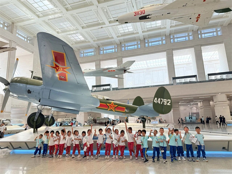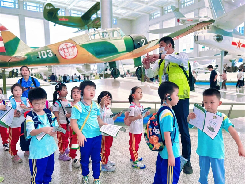 孩子们仰头观望,了解每一架战机背后所承载的使命与荣光,深深感受到“蓝天卫士”捍卫国家领空的忠诚与无畏。这一刻,飞行的梦想与保家卫国的信念,如种子般悄然播撒进一颗颗纯真的心田。
