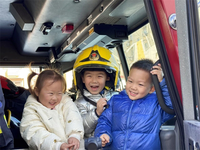 “消防车里藏着什么?”“它们是如何扑灭大火的?”······围绕孩子们的各种疑问,消防员结合幼儿的认知特点,用生动有趣的语言,细致讲解各类消防器材的功能用途、使用方法及灭火原理。孩子们认真观察、专心聆听,在实景探索中拓宽消防知识视野,安全意识悄悄萌芽。
