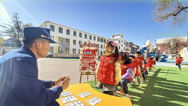 寓教于乐,教学相长,轻松有趣的竞答互动将现场气氛推向高潮,消防员与孩子们热情互动,一问一答间悄然点燃知识的火花,为成长之路筑牢坚实的安全防线。