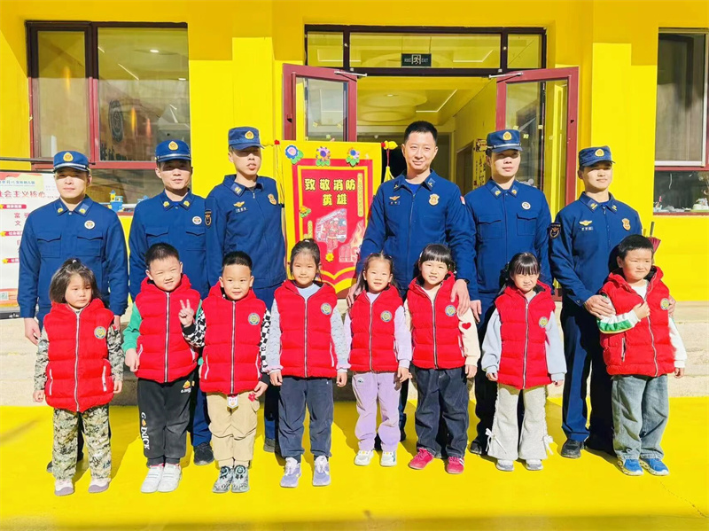 以礼致敬,以心传情。孩子们将亲手制作的锦旗献给敬爱的消防员叔叔,用最纯真的方式表达对烈火英雄的崇敬之情。