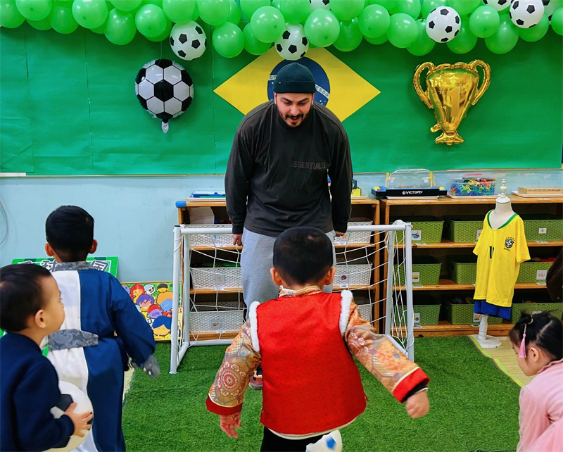 在美洲板块的热烈氛围中,孩子们开启充满激情与活力的文化探索。制作墨西哥风情草帽、品尝美味塔可,沉浸于热情奔放的异域文化,感受着墨西哥人对生活的热爱;巴西区域,孩子们化身绿茵小将,投身于酣畅淋漓的足球游戏,在奔跑与欢笑中体会巴西足球的澎湃激情,感受足球王国对体育精神的执着追求。